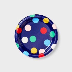 Bring a fun element to your meals with these 20ct Confetti Dots Snack Plates from Spritz™. These paper plates feature confetti patterns against a blue backdrop that can easily complement your table decor. Its disposable design makes it easy for post party cleanup. Serve up a variety of snacks, treats and desserts using these paper plates from Spritz™ to delight your guests.