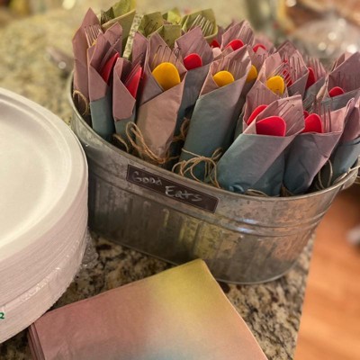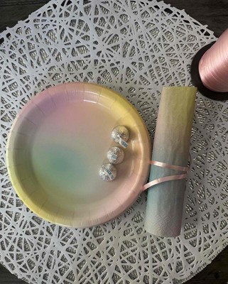 Get ready to serve your guests in style at your next gathering with the 20ct Pastel Gradient Snack Plates from Spritz™. These snack plates featuring a pastel gradient design are the right size for serving up appetizers, desserts, snacks and more. With a pack of 20 plates, the 20ct pastel gradient snack plates from Spritz™ ensures you’ll have more than enough to go around for all your guests.