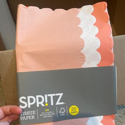 20ct Scalloped Edge Tissue Paper Coral - Spritz™: Multicolor Gift Packaging Accessories, Solid Pattern, 15.5" x 24"