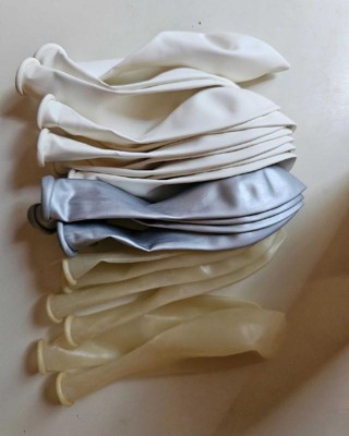 [This review was collected as part of a promotion.] This pack of twenty standard size balloons is very versatile and can easily be matched with other balloon colors. My youngest daughter added beads and mini pom poms to the clear balloon and it looked and sounded neat. The silver balloon seemed to be thicker than the white and clear balloons and it was harder to tie in a knot. All blew up easily with a balloon pump. Perfect for parties or other ocaisions. I received an incentive to write this review.