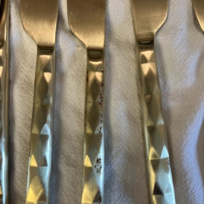 I bought these a month ago. I absolutely love the look and weight and feel. We’ve cared for them according to manufacturer’s directions, and the knives already have odd rust spots up and down the handles. Today, I noticed a rust spot on the handle of one of the forks and tried to get it off, and a metal shard came off and went straight into my thumb. I will absolutely be returning. This is pretty disappointing, as our last set of flatware was from target and we’ve had it for almost 13 years. This set is beautiful, but cheaply made and seems harmful.