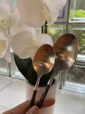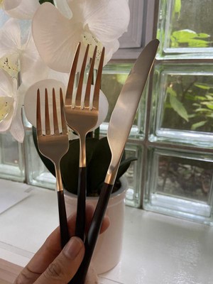 [This review was collected as part of a promotion.] I saw these online and ordered them. I was awwwd by the just seeing them the minute I opened the box . The color combination is on trend and quality wise all they are awesome . Each piece is finished with a finesse and they are light weight as well . I always worry heavy spoons and knife makes it difficult to hold while eating but these ones and light and check off the box on my list . Highly recommend!!!