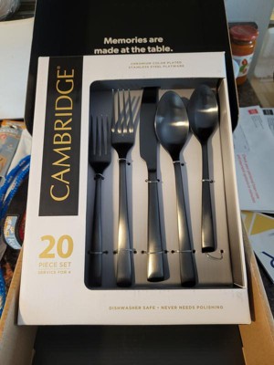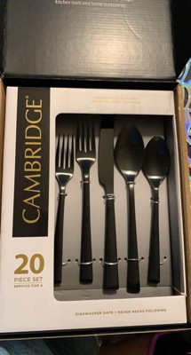 20pc Gilda Black Satin Flatware Set - Cambridge Silversmiths: Matte Black Silverware, Service for 4, Dishwasher-Safe