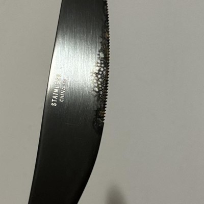 submitted byCarmen - 3 years agoTarget staff supportA: I have had this flatware about 3 months and the black has completely rubbed off of a large area one one knife blade. Not sure why. It is beautiful flatware though for casual dining, however.