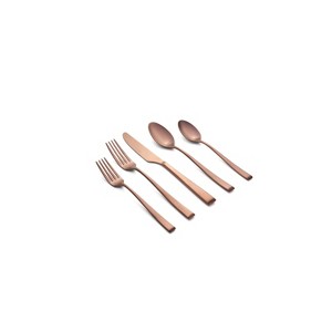 Elevate your favorite dinnerware and coordinate any table setting as you entertain from Cambridge Silversmiths with the Marlise Copper Satin 20-Piece Flatware Set. This service for 4 has a comfortable handle and evokes a substantial yet classic feel in your hand with vibrant, modern design. Made from 18/0 Stainless Steel Includes 4 each: salad forks, dinner forks, dinner knives, dinner spoons, and teaspoons.