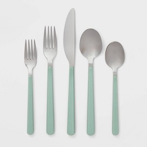 20pc Plastic Handle Flatware Set Mint - Room Essentials™: Stainless Steel Silverware Set, Service for 4, Forks Spoons Knives