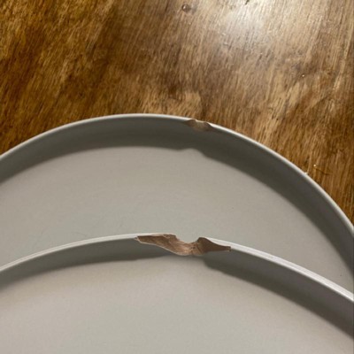 I received these as gifts for my bridal shower. We have used for two weeks and are entirely scratched and scraped from using basic knives, forks and spoons. Very disappointed in quality/value. Do not recommend. Do better target!