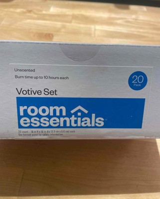 20pc Unscented Votive Set White - Room Essentials™: Paraffin Wax, 10hr Burn Time, 20 ct