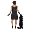 Let's take it back to a few decades ago, where the women were dressed to the nines in fancy dresses and beautiful makeup, and men wore suits and top hats. The 1920s era was the time for all women to show off their best flapper costumes. The more glitz and glam the better! It's time to pull out all the stops and to dazzle away at your next 20s themed party, in our Womens 1920s Black Flapper Costume. The Womens 1920s Black Flapper Costume comes up just below the knee and gives off all those sultry vibes in black. It has tassel detailing all the way down and will flutter away as you move on the dancefloor. To complete the ultimate flapper look, we've included a matching black headband with a feather. All you need now is a feather boa and a pair of satin gloves (and a handsome man), and you're all set!