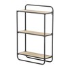 A combination of simple structuring and choice materials make this three-tier wood wall shelf perfectly functional and pleasingly fashionable. The natural wooden shelves offer a dose of rustic appeal, while the smooth metal frame features a black finish and a contemporary vibe. The wall shelf presents an understated design and plenty of storage space for books and display items.
