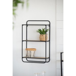 - The natural wooden shelves offer a dose of rustic appeal, while the smooth metal frame features a black finish and a contemporary vibe.