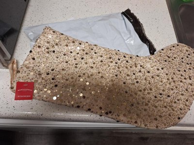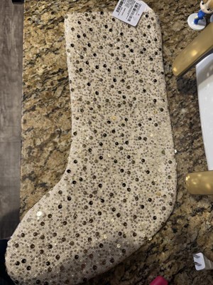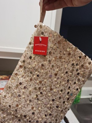 21" Christmas Sequins and Beads Stocking Champaign Gold - Wondershop™