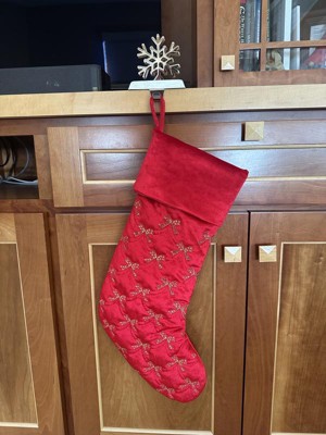 21" Christmas Sequins/Embroidery Bow Velvet Stocking Red - Wondershop™