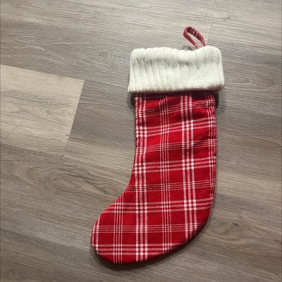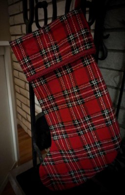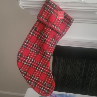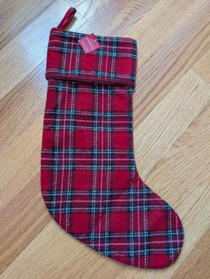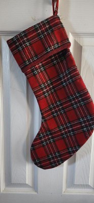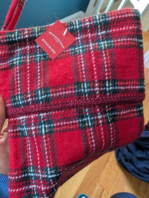 21" Christmas Woolen Yarn Dyed Fabric Stocking Red/Green Plaid - Wondershop™