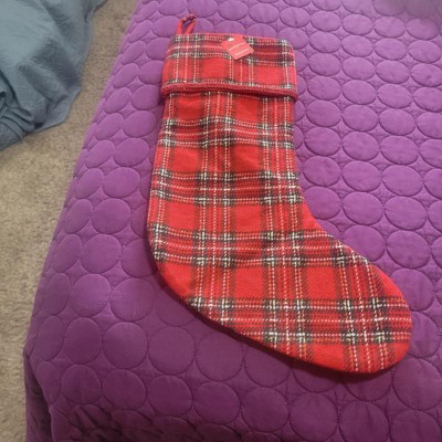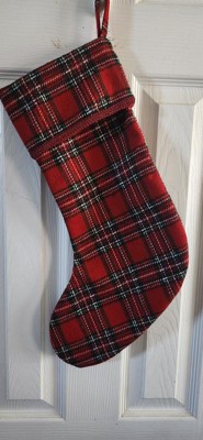 Make Christmas morning even more magical by placing small gifts in this Christmas Woolen Yarn-Dyed Plaid Fabric Stocking from Wondershop™. Made from polyester fabric, this Christmas stocking is sized perfectly for a variety of stocking stuffers. Plus, it's designed with an attached hanging loop, making it easy to hang above your fireplace. Featuring a plaid design in red and green hues, it also adds timeless charm to your holiday decor.