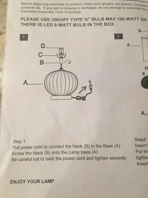 I am very disappointed this lamp did not work for me! I think this lamp is beautiful and it is exactly what I was looking for to match my decor with the mercury silver glass base and the white cotton shade but I am unable to make this lamp work for me! First of all this lamp needs to be fully assembled and the directions say to pull the cord through the base and screw on the neck piece to the base but it is impossible to screw on the neck without twisting the wire inside which is dangerous because that can cause a fire from the wire being twisted! I really wish this lamp already came assembled and all I had to do is put the lamp shade on and screw on the light bulb but not with this lamp! Also the part where the lamp shade goes is installed crooked so the lamp shade will always be crooked! I will upload photos for reference. Overall I think the design of this lamp is poor being that they want the consumer to screw on the neck piece which should have already been installed by the manufacture and there is no way to untwist the wire inside while trying to screw on the neck piece! Now I have the headache of trying to return this lamp! Customer service has not been answering their phones after days of calling and waiting hours on the phone!