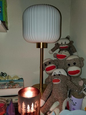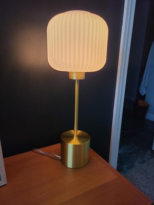 [This review was collected as part of a promotion.] I needed a lamp for my home office that would fit on top of my desktop computer. This lamp is the perfect height, sits in the corner of the office, and lights up my workspace perfectly. I like the style; especially the glass shade and the timeless look of brushed gold. The lamp provides enough soft light for the entire room so that I no longer need to turn on the ceiling light. It makes for a much calmer atmosphere and I highly recommend this lamp for any room in the house.