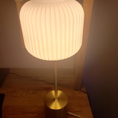 [This review was collected as part of a promotion.] This lamp is the perfect lamp for my desk. It is well made and looks/feels like a quality lamp. The shade is a milky glass that gives off a beautiful glow when lit. I put in a 60-watt warm LED bulb and it gives off the perfect amount of light for my work area. This does not come fully assembled, but it is very easy to put together. You just need to twist the pieces together and it takes only a minute. This style would look gorgeous in a mid-century modern home, but I love it in my transitional home as well. As an interior designer, I see a lot of lamps and am so happy with this lamp for my personal use. Highly recommended!