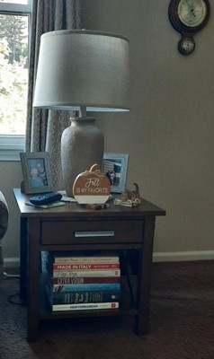 - Features one drawer with metal drawer glides and an open bottom shelf providing ample storage space.