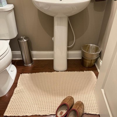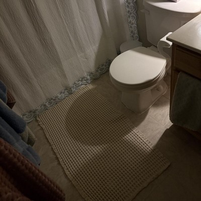 [This review was collected as part of a promotion.] This waffle cotton bath rug is a fantastic addition to the bathroom! The texture is soft under foot yet absorbent enough to keep the floor dry after showers. I really love the waffle weave. It adds a clean, modern look while still feeling cozy and comfortable. The back of it has a little stickiness so it stays in one place on the floor. I actually decided to use it as a door by the front door and buy the white one for the bathroom. If you’re looking for a bath rug that combines comfort, durability, and style, this one is a great choice.