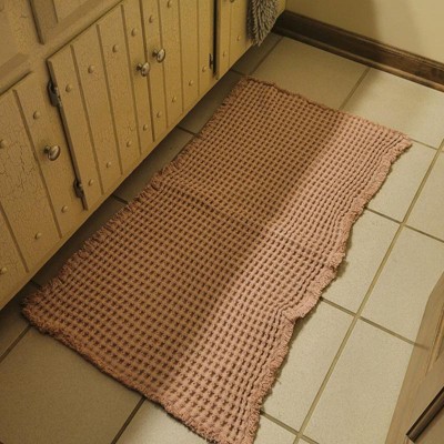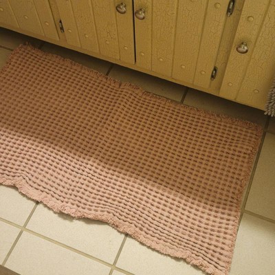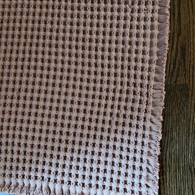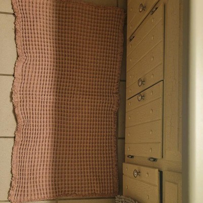 [This review was collected as part of a promotion.] The 21” by 34” waffle cotton bath rug with fringes in the clay color is a high quality bath rug. It’s super lightweight yet comfortable on your feet after getting in and out of the shower. The color reminds me of the mountains in Sedona. It’s a beautiful and comfortable rug, it just did not look good with my bathroom floor so it’s going back.