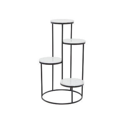 - •This round 3 tier metal plant stand showcases a large staircase inspired structure design with beautifully curved legs and feet
