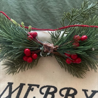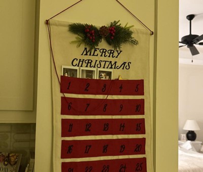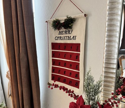 21.5" 'Merry Christmas' Fabric Hanging Advent Calendar with Faux Greenery and Star Counter Cream/Red - Wondershop™