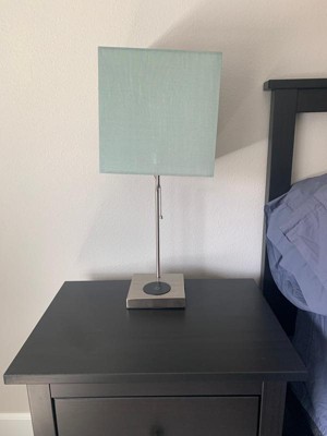 Modern Ashton Square Table lamp feature a Wireless Charging Pad with Qi Technology and a USB port for convenient charging. With Qi integrated into many smartphones, charging is easier than ever—no charging blocks or cords required. Design a workspace or reading nook that’s primed for productivity, you can charge up without cords or clutter. An elegant & practical solution: This lamp does not have the glare of overhead lights or exposed bulbs as its neutral linen shade softens the light giving your room a warm ambient glow. The unique modern style and size of this lamp makes it the perfect bedside table, office lamp, or living room side table lamp. Contemporary design and features a metal construction with a top w/ a Blue Green Textured Square Drum shade. Convenient Pull Chain: With the stylish pull chain, you can turn ON/OFF with the pull chain. No need to find the switch on the cord when you are going to sleep. Super convenient for your bedroom. The charging port and pad function regardless of whether the lamp is on or off. Add this table lamps to your bedroom, office or living room for a dash of delightful symmetry and visual allure.