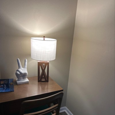 This gorgeous wooden lamp has an earthy texture and a geometric open structure that would easily blend with traditional, rustic, or contemporary décor. Designers love the silk-wrapped cord, linen drum shade, and classically finished finial. At 21.5" high, it would sit perfectly atop a desk, armoire, or side table.