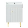 Refresh your bathroom with our 21.6" White Bathroom Vanity, a combo cabinet that seamlessly blends elegance with practicality. This unit boasts a bathroom storage cabinet and a single ceramic sink, with storage space thoughtfully located on the left side for convenience.