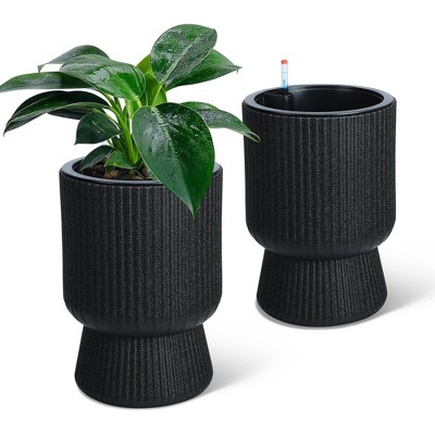 Garvee 21.7" Tall Planters Set of 2, Self Watering Plant Pots with Drainage Holes, Water Level Monitor, Wheels for Outdoor & Indoor