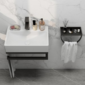 Upgrade your bathroom with our beautiful and practical vanity. Made with a ceramic basin and stainless steel frame, this freestanding unit combines style and practicality with a smooth surface and an elegant DIY towel rack. Pre-drilled for easy installation. Enjoy the pleasure of combining quality, beauty and convenience in this bathroom unit.