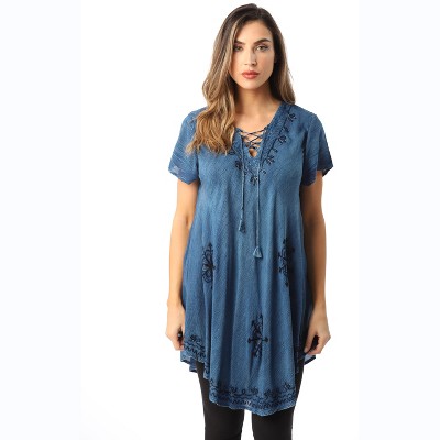 Riviera Sun Lace-Up Cold Shoulder Casual Dress with Tonal Embroidery