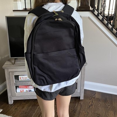 Whether headed to the office or traveling, this Canvas Backpack from Open Story™ is your ultimate travel companion. Made of cotton canvas fabric, this soft side backpack features a spacious zippered main compartment to store your belongings and multiple inner pockets for pens, keys, and other accessories. It also boasts a zippered pocket that fits laptops up to 15 inches, two side pockets, and a front pocket on the outside to stash frequently used items. Plus, this 21-liter backpack is designed with adjustable shoulder straps, a trolley sleeve, and a top handle for versatile carrying options.