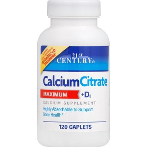 21st Century Calcium Citrate Tablets Easily Absorbed Calcium for Bone, Teeth & Muscle Health 120 Count