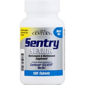 21st Century Sentry Senior Multivitamin is specially formulated to support the health and wellness of adults aged 50 and over. This daily supplement provides a comprehensive blend of essential vitamins and minerals to help meet the changing nutritional needs that come with aging. With added support for bone health, heart health, immune function, and eye health, Sentry Senior helps promote overall vitality and well-being. Each tablet contains key nutrients such as Vitamins A, C, D, E, B-complex, and zinc, all in one convenient daily dose. With 100 tablets per bottle, it offers a long-lasting supply of targeted nutritional support for healthy aging.