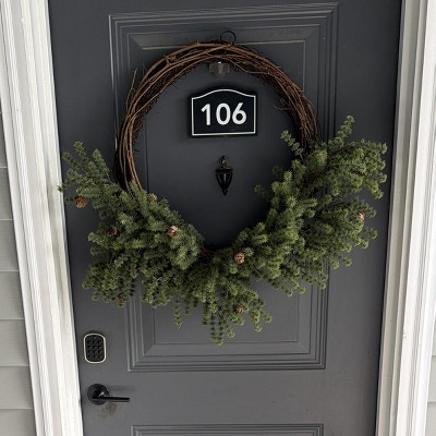 Spread festive cheer in your home with this Pine with Pinecone Wreath from Hearth & Hand™ with Magnolia. This asymmetrical wreath features faux green pine needles with brown faux pinecones for a classic, wintry look. Featuring a back loop for easy hanging, you can display this wreath on any wall or door to instantly elevate your holiday setup.