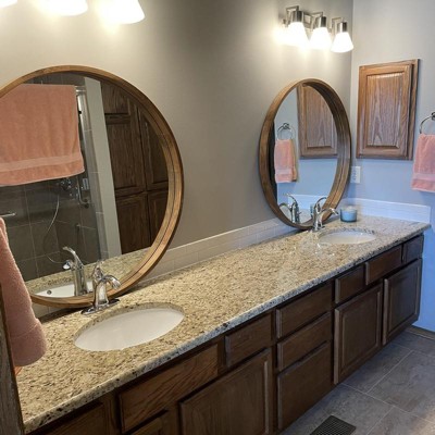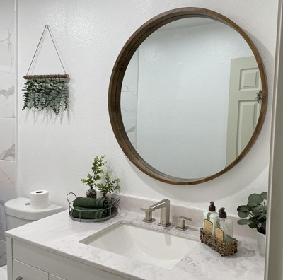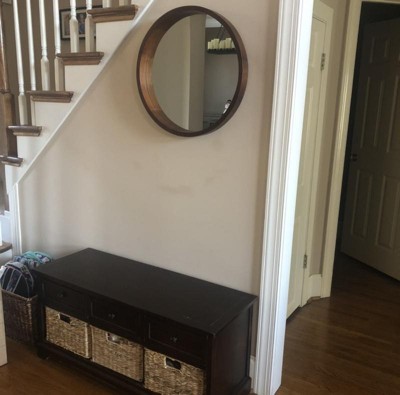 I found a brown round mirror on other website first, I like it. But then I checked the target website finding this gorgeous mirror and 100 dollar less than the other website. I ordered it right away. When I got it, I was so happy for this purchase. It’s just exact what I want.