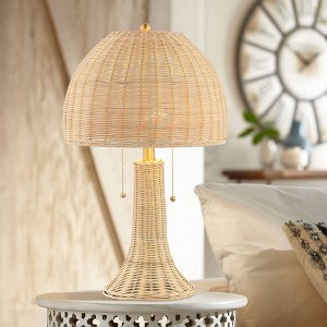 22" LED Joanie Rustic Iron Table Lamp Natural/Brass: Wicker Shade, Silk Cord - JONATHAN Y