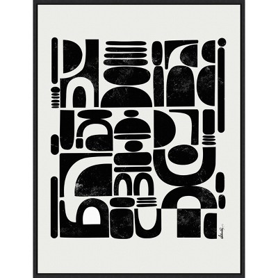 ART DESCRIPTION: This piece features dots, triangles, lines and other shapes arranged in a pattern, looking like fabric from another part of the world. The shapes and lines are all in black against a white, solid background. This Amanti Art canvas art print was created by Anne Tavoletti and printed by Amanti Art in Madison WI. The canvas is stretched by hand and finished with a float frame. Individually made using traditional custom framing techniques, it has the quality you would expect from your local frame shop. Because of our attention to detail and focus on artistry, architects, interior designers, and homeowners alike choose this framed canvas artwork to create beautiful living spaces.