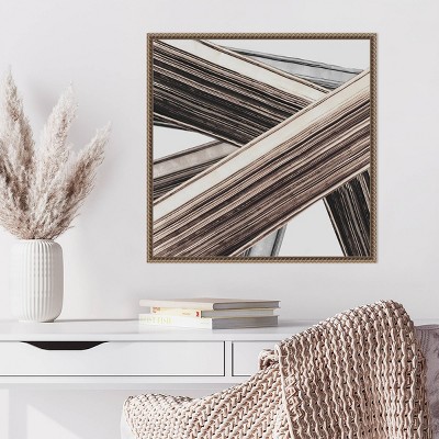 Wash woodgrain coloring and dramatic depth. The frame measures 1 in. wide and stands 2 in. off the wall. The canvas appears as if it is floating in the frame because it has a narrow gap between the edge of the canvas and the frame. The overall size of this framed canvas print measures 23 in. W x 28 in. H.