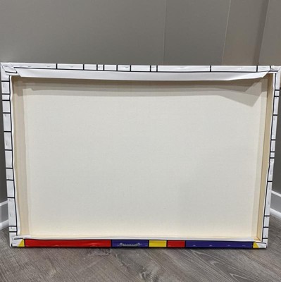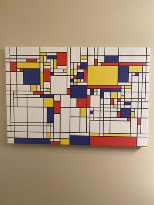 This ready to hang, gallery wrapped art piece features abstract compositions of squares and colors. Giclee (jee-clay) is an advanced printmaking process for creating high quality fine art reproductions. The attainable excellence that Giclee printmaking affords makes the reproduction virtually indistinguishable from the original piece. The result is wide acceptance of Giclee by galleries, museums, and private collectors. Gallery wrap is a method of stretching an artist's canvas so that the canvas wraps around the sides and is secured a hidden, wooden frame. This method of stretching and preparing a canvas allows for a frameless presentation of the finished painting.