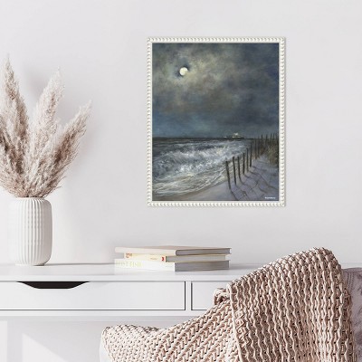 FRAME DETAILS: The canvas is framed in the Sylvie Beaded White frame, which is a vintage float frame featuring a traditionally beaded ornate design with white coloring, a subtle woodgrain pattern and dramatic depth. The frame measures 1 in. wide and stands 2 in. off the wall. The canvas appears as if it is floating in the frame because it has a narrow gap between the edge of the canvas and the frame. The overall size of this framed canvas print measures 22 in. W x 22 in. H.