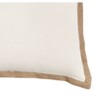 This large Rizzy Home Neutral Beige and Brown Square Throw Pillow will fit any style of home or office décor. This pillow is essential base for your multi-pillow arrangements. The body of the pillow is a Solid Light Beige and the flanged edge features a contrasting brown cotton jute material. The back of the pillow has a hidden zipper to allow the removal of the polyester fill before machine washing.