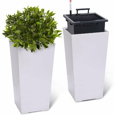 22.4 Inch Tall Planter Set of 2, Indoor £¦ Outdoor White Taper Planter with Shelf Insert, Self-Absorbing Plastic Flower Pots, Large Resin Plant Pots