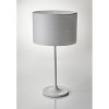 An interpretation of Scandinavian design, the Oslo table lamp features a matte white modified tulip-styled base and body and is topped with a hardback drum shade of white Japanese paper. The horizontal striped paper adds subtle pattern that is highlighted when lit. The contemporary style base is made of metal and has a chic white finish that works in almost any home décor. An on/off rotary switch is located on the socket. This lamp has a clear cord and is smart outlet compatible. Bulb is not included.