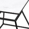 - Square marble print top and geometric metal base combine for a sleek modern look