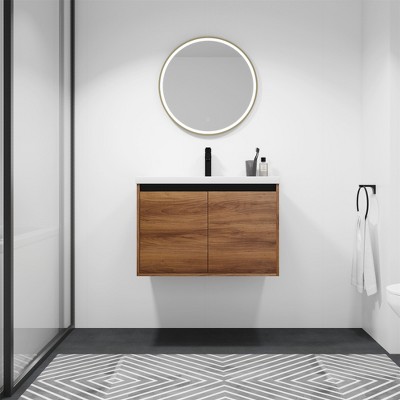 22 Inch Wall Mounted Bathroom Cabinet, Wooden Medicine Cabinet with Mirror Doors & Adjustable Shelves, Floating Storage Cabinet for Living Room,Oak