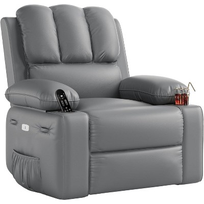 22'' Recliner Chai, Manual PU Leather Recliner with Cup Holders & Side Pockets, Ergonomic Design for Nursery, Living Room, Bedroom, Gray