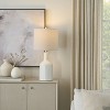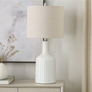 Enhance your space with the timeless charm of this transitional lamp, featuring a sleek white ceramic base and an beige fabric shade that provide a perfect blend of sophistication and style. With its clean lines and versatile design, this lamp complements a variety of interiors from traditional to coastal making it an ideal addition to your living room, bedroom, or entrway.